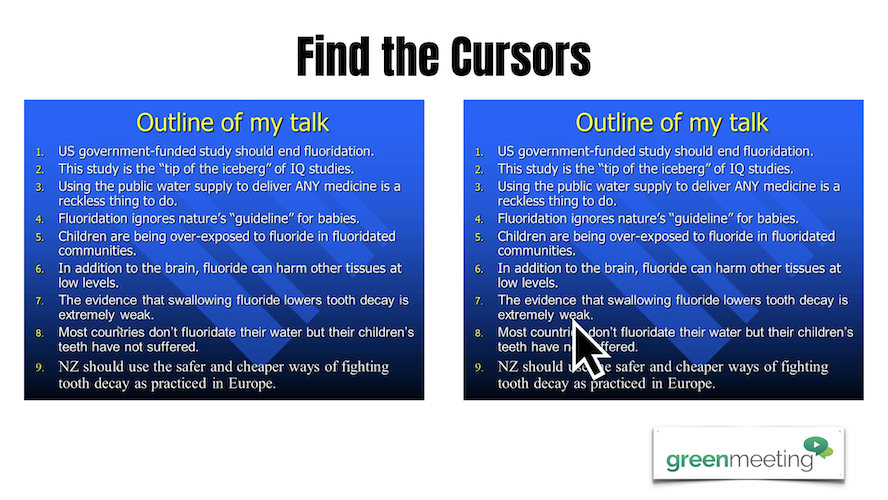 It's a simple fix - not the bad Powerpoint slides but you can get a ton of YouTube help with that - but by making a REALLY BIG CURSOR for your presentations.